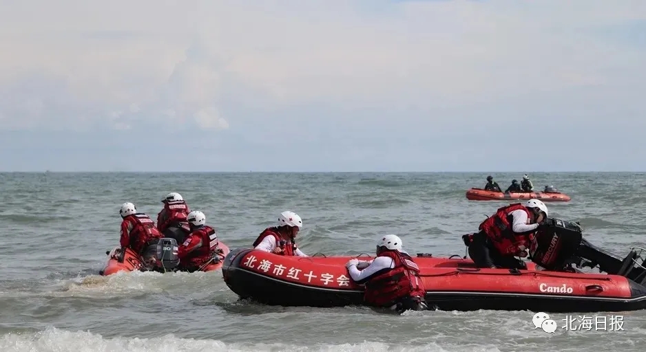 北海市紅十字水上救援隊海上救援演練。